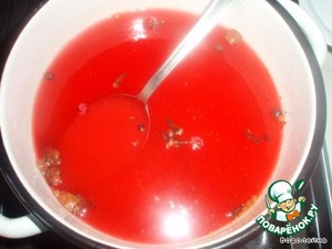 Вот мы уже залили два раза. После снова сливаем воду в кастрюлю добавляем сахар, специи, уксус (т. е готовим уже наш маринад). Доводим до кипения и...