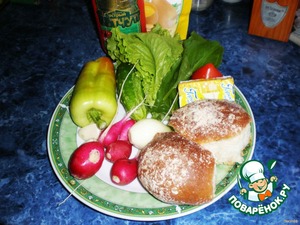 Берём все ингредиенты, редис должен быть с хвостиками.