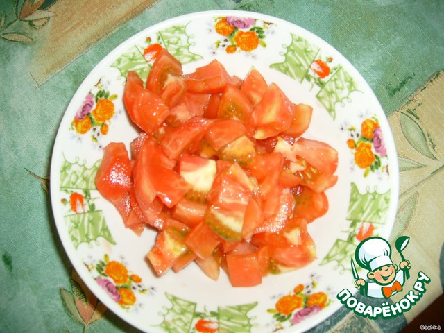 Нарезать помидоры кубиками (советую очистить от шкурки, но не обязательно)