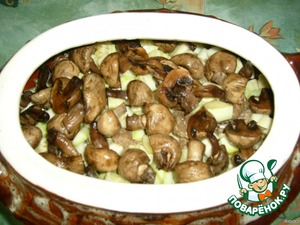разрезать пополам шампиньоны свежие (у меня замороженные)