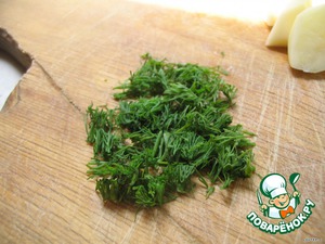 Зелень нарезаем мелко. После того как все овощи сварились, приправляем суп и добавляем зелень.
