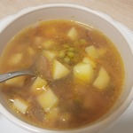 Картошку чистим и нарезаем пополам либо на четвертинки (зависит от размера картофеля, я беру маленькие, так как-то вкуснее). Нарезали, забрасываем в бульон.