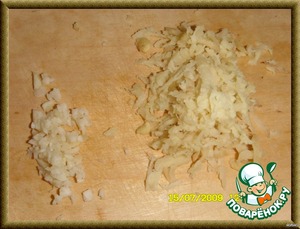 имбирь протереть через крупную терку, чеснок нарезать мелко
