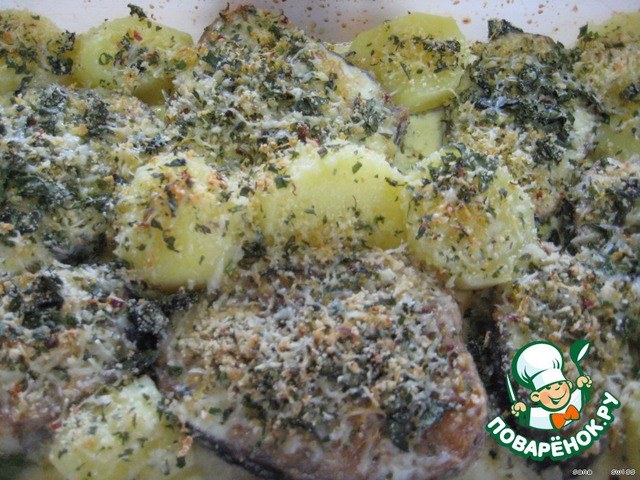 выкладываем в огнеупорное блюдо и сбрызгиваем лимонным соком. -