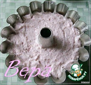 Смочить форму водой, налить в нее половину желе, убрать в холодильник до