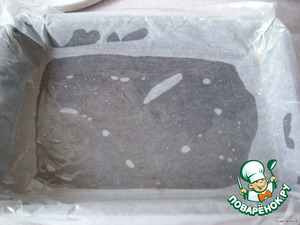 Форму прямоугольную смазать маслом, выложить бумагу для выпечки, так, чтобы свисали края, что бы можно было потом накрыть и тоже смазать маслом.