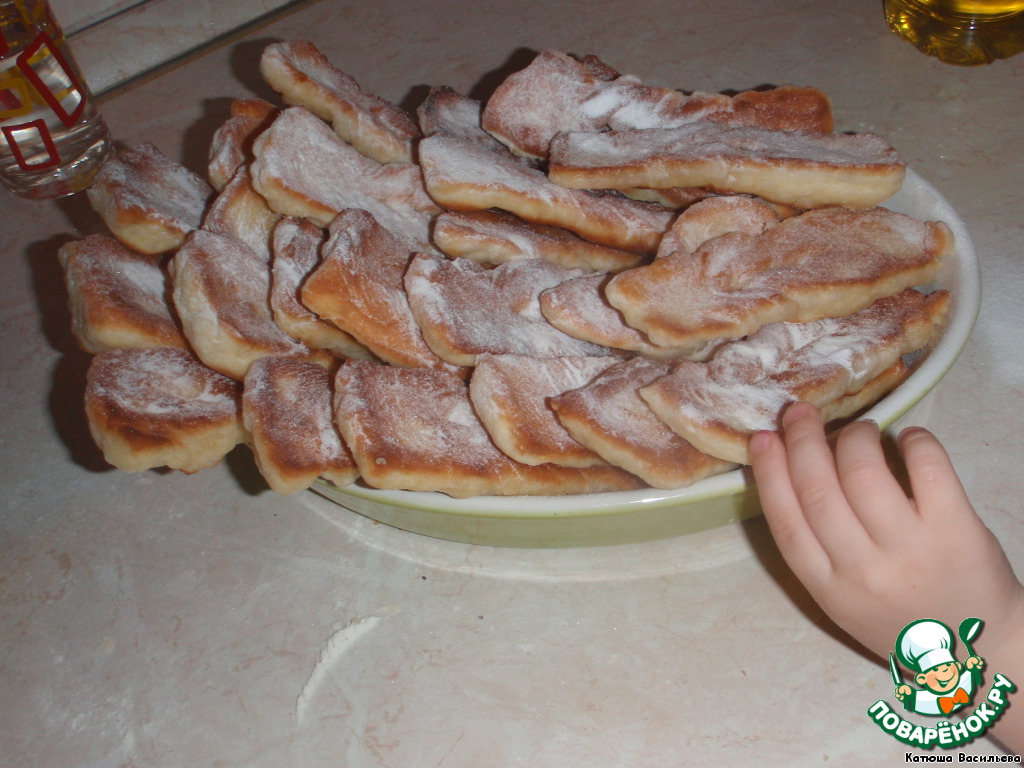 Быстро, вкусно, доступно. Такие пышечки получаются очень воздушными, очень нравятся детям. У нас в деревне такие пышки пекли на домашней простокваше, называли мы их "тарарушки". Я из такого теста пеку круглые пышки когда хлеб заканчивается а так же пирожки. Тесто будет более воздушным если в него добавить 2 столовых ложки сметаны.