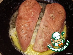 куриное филе посолить, поперчить и смазать растительным маслом (1столовая ложка), оставить на 10 минут промариноваться