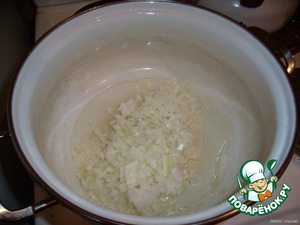 Обжариваем мелко нарезанный лук в растительном масле до прозрачности.