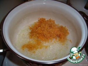 Добавляем тертую на мелкой терке морковь. Обжариваем.