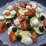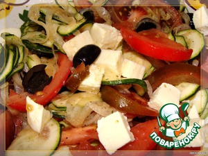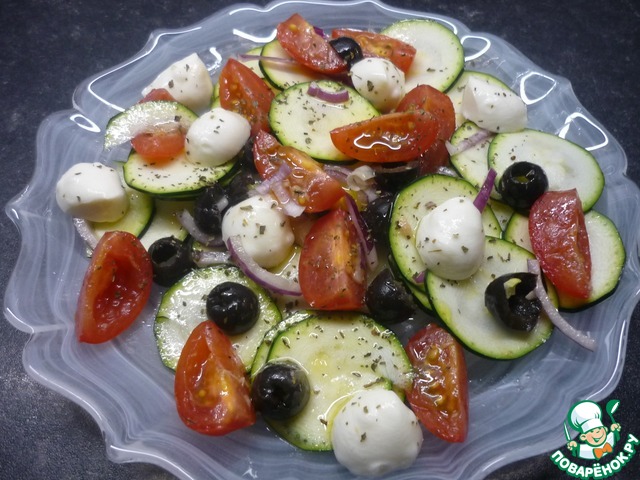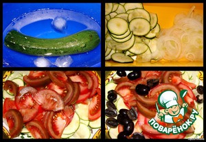 Часа за 3 до приготовления салата положить цуккини в воду со льдом и поставить в холодильник.