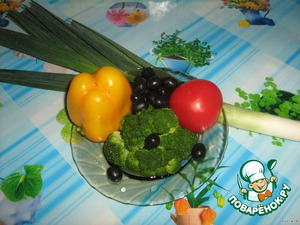 Все ингредиенты укладываем на лист салата кучками, сверху - оливки и поливаем маслом оливковым. Я этот салат не солю. Капуста подсолена, оливки тоже, лук - маринованный, помидоры имеют приятный кисо-сладкий вкус. Приятного аппетита.