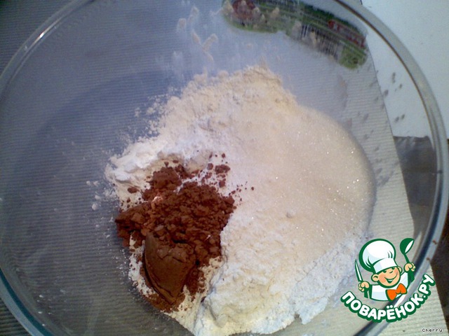 Я всегда в блинное тесто добавляю подсолнечное масло, минимум пол-стакана и более. Оно не позволяет блинам прилипать к сковороде. Сюда, по привычке, тоже добавила, хоть сковорода и с тефлоном. Если нет, то первый раз хорошо смазать сковороду салом, а далее это будет уже не нужно, блины сами будут отскакивать :-) Испечь шоколадные блинчики.