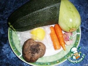 • С кабачка и цуккини снять узкими продольными лентами кожицу, натереть на корейской тёрке. Морковь очистить и тоже натереть. Тоже проделать со свёклой. Чеснок очистить и измельчить.