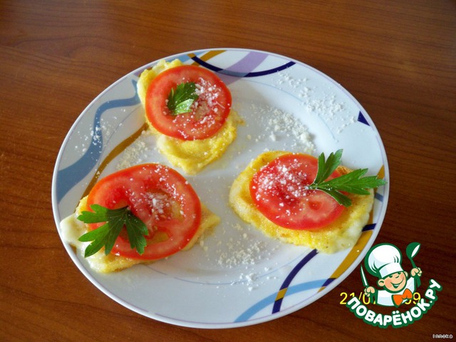 Украсить помидором и зеленью. Получается вот такая вкусняшка. Приятного аппетита и хорошего дня!!!