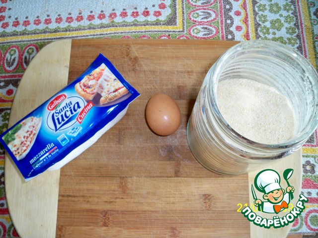 Нарезать моццареллу ломтиками толщиной 5-7 мм, взбить яйцо