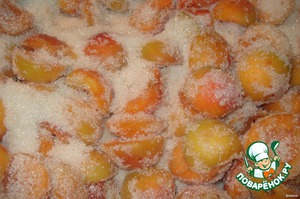 1) на 2,5 кг. (веса половинок, без косточек) взяла 1,5 кг. сахара;