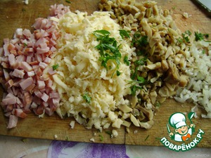 - Шампиньоны (маринованные, резанные) — 1 бан.