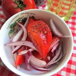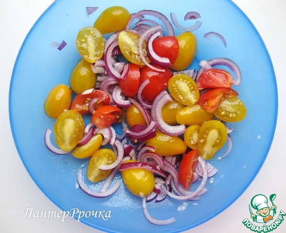- Лук красный (салатный, можно и обычный репчатый) — 1 шт