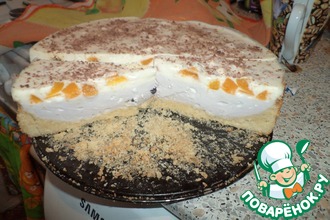 4 ) Соединить банан, апельсины, творог и половину шоколада, перемешать.