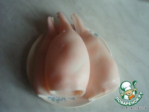 Вот наши кальмарчики уже почищенные и отваренные (варить их недолго, буквально пару минут, иначе будут резиновые)