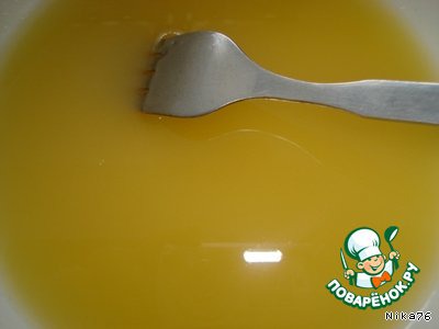 Растопить масло. Добавить к нему сахар, яйцо и разрыхлитель.