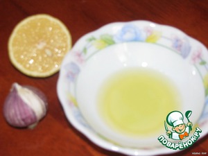 • Делаем соус: оливковое масло (или подсолнечное), чеснок, сок половины лимона.