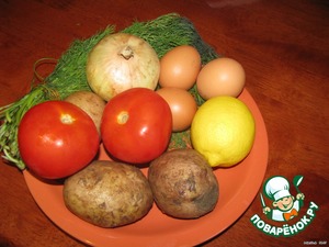 • Приготовить сухарики из батона, отварить картофель, яйца.