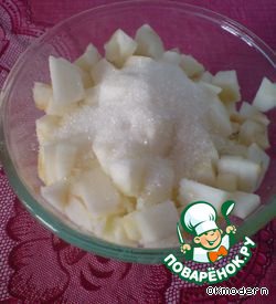 1. яблоки очистила, вырезала сердцевину и порезала на кубики - выложила в глубокую стеклянную емкость, сверху посыпала сахаром и выдавила из половинки лимона сок - всe тщательно перемешала.
