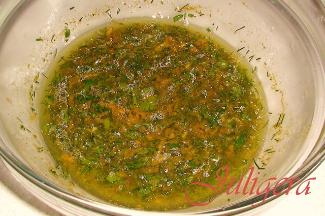 - Кинза (зелень, в салат - 10 г; в заправку - 20 г) — 30 г