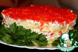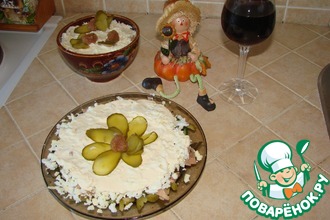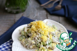 Я готовила двойную порцию салата, и у нас осталось немножко на утро, мой муж поджарил салат с яйцом, постоянно перемешивая. Получился полноценный завтрак и на мой вкус - ещё вкуснее, чем сам салат...