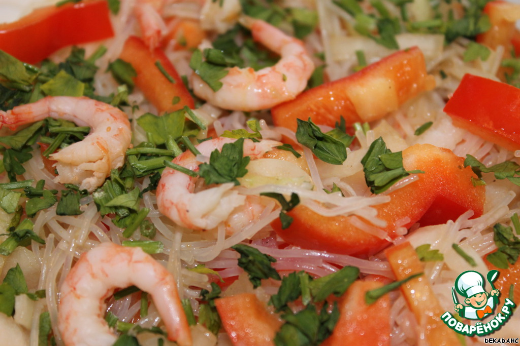 Ингредиенты для «Азиатский салат из лапши с креветками»: