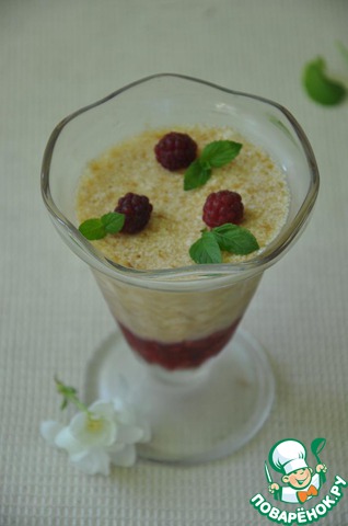 При подаче украсить веточками красной смородины и стружкой белого шоколада.