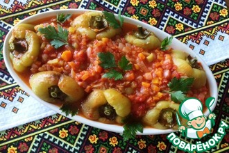 На баклажаны выложить помидоры, немного посолить, поперчить.