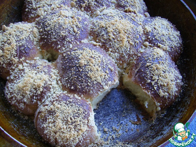 Дать немного остыть в форме, затем поделить на отдельные булочки.