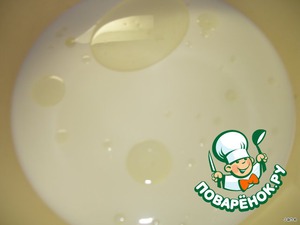 В теплое молоко добавить 1 ст. л. сахара, соль, растительное масло.