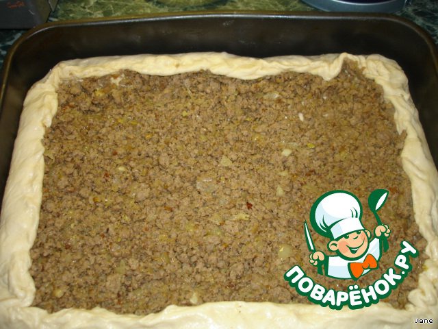 Рецепт «Пирог с мясом на дрожжевом тесте»: