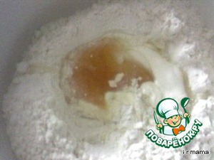 • Замесив тесто, откладываем в сторонку на минут 10, чтоб тесто отдохнуло и сода начала взаимодействие со сметаной.
