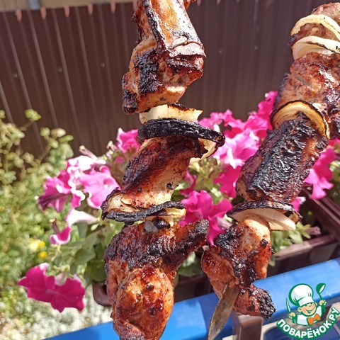 Поскольку летом шашлыки делаем довольно часто, то естественно обзавелись уже любимым маринадом... но в этот раз использовали новый... так для эксперимента... пришлось менять приоритеты... так как маринад просто поразил... уже второй раз повторяем на бис... нежнейшее мясо... тонкий вкус... легкая и ненавязчивая травяная нотка... безупречный "загар" шашлыку обеспечен... По мне так это лучший маринад, который я знаю... а мы их стоооооолько перепробовали)))