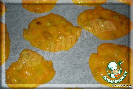 Выкладываем массу ложечкой на пергамент и ставим в духовку разогретую до 180 гр. на 20 мин.