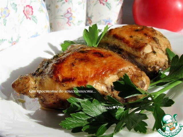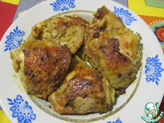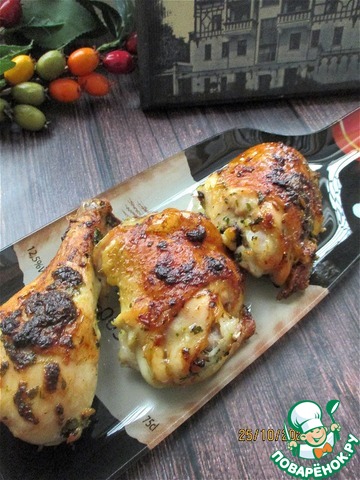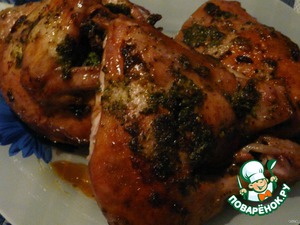 Жарить надо или на открытом воздухе, на мангале. Или вот так на решетке в духовке. Внизу под решеткой у меня посуда, в которую будет капать масло - этим маслом надо время от времени поливать кур