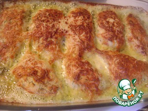 Полученный соус выкладываем на наши вареники, посыпаем сыром и отправляем в предварительно нагретую до 180 гр духовку на 15 мин.