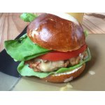 Нижнюю часть булочки намазать сливочным маслом, сверху положить лист салата и сыр.