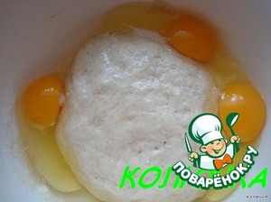 Когда тесто поднялось, добавляем 3 сырых яйца, мешаем и ставим снова, чтобы поднялось.