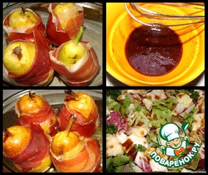 Пока груши пекутся, делаем соус: смешать оливковое масло, бальзамический уксус, мед, соль и перец - взбить венчиком до однородности.