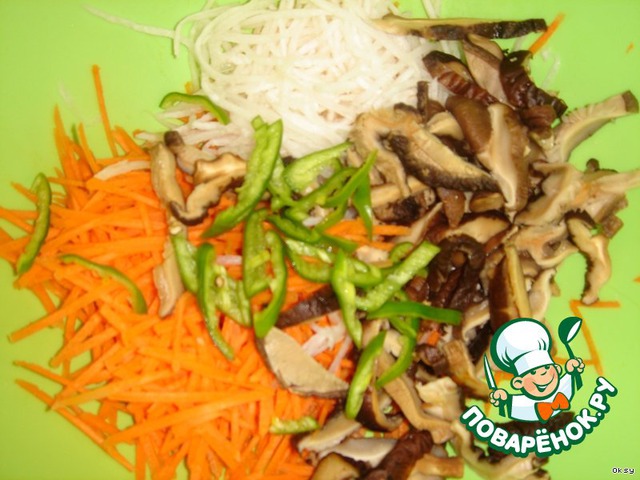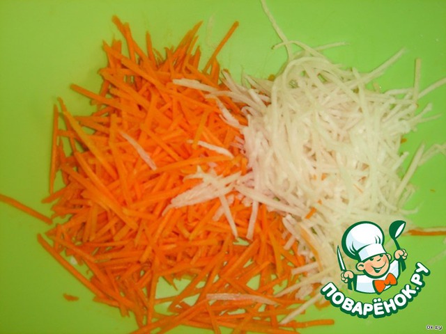 Морковь и дайкон нашинковать соломкой.