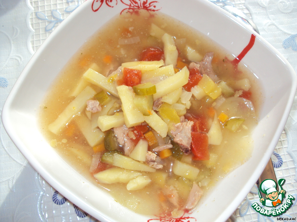 Рецептом этого летнего супа поделилась с моей бабушкой соседка на даче лет двадцать назад. В первый раз варили с опаской, уж очень необычным показался суп со свежими огурцами. Но всем понравилось, и с тех пор это один из наших любимых супов. Вчера на даче собрали немного морковки и огурцов, и настала пора представить Вашему вниманию этот замечательный супчик, готовится он за полчаса, и, как сказал вчера мой дед, "жира у тебя на боках от него точно не прибавится"!
