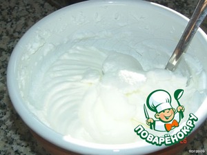 Осторожно перемешивая ложкой, постепенно вводим взбитые белки в желтковый крем.