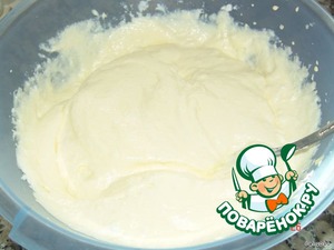 Взбить на максимальной скорости яичные желтки с 50гр сахарного песка до увеличения объема в 2 раза и до получения стойкой белой пены, продолжая взбивать (в это время скорость уменьшить) вводим постепенно свежий маскарпоне.