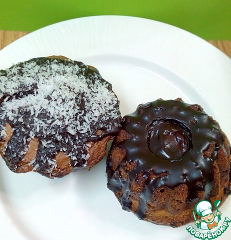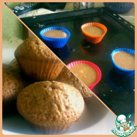 Подготовим формочки.при необходимости смажьте их растопленным сливочным маслом. Заполняем чередуя ложку белого теста .ложку темного.(Заполняем на 2/3)